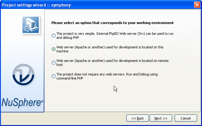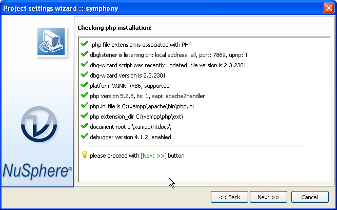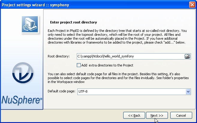 We used PhpED's Project Settings Wizard to setup our Symfony project - wizard starts automatically when you start new PhpED Project and all it takes is clicking the Next button and correctly selecting the root of the Project: