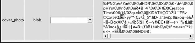 If $cfg['ShowBlob'] is set to TRUE, we see the following in the BLOB field: