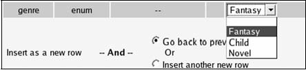the field is not large enough, but what we entered was 'Fantasy','Child','Novel'. We also have to change the default value to one of the possible values, to